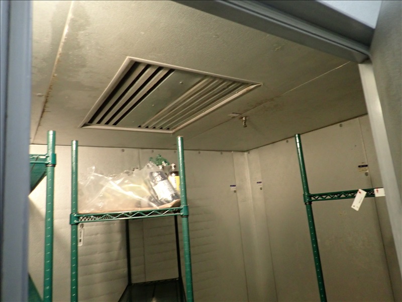 APPROX. 8'X10'X7'6" WALK-IN COOLER, ROOF MOUNTED COMPRESSOR/EVAPORATOR, LIGHT, (3) WIRE RACKS, SPRINKLER HEAD