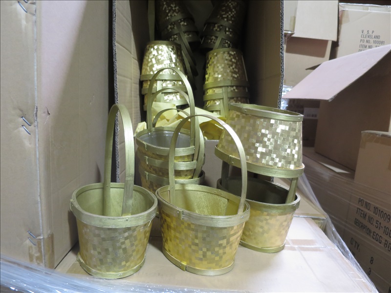 LARGE INVENTORY OF BASKETS, BOXES, TUBS & TINS IN MULTIPLE SHAPES TO INCLUDE OVAL, SQUARE, EGG, BOWS, OVAL, TEA=POT, BABY, PENGUIN & MUCH MORE