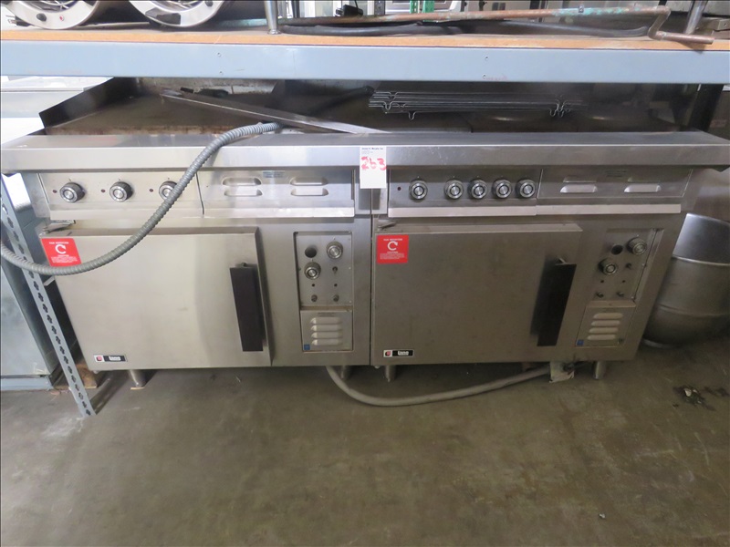 2-DOOR RANGE W/(4) BURNERS, 24" GRIDDLE & 22" HOT PLATE (MUST BE PICKED UP BY 12 PM, TUESDAY, JULY 30TH)