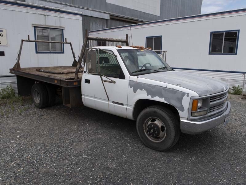 2 WHEEL DRIVE PICKUP W/ 12' FLATBED, V8, GAS, 5 SPEED MANUAL TRANSMISSION, DRW