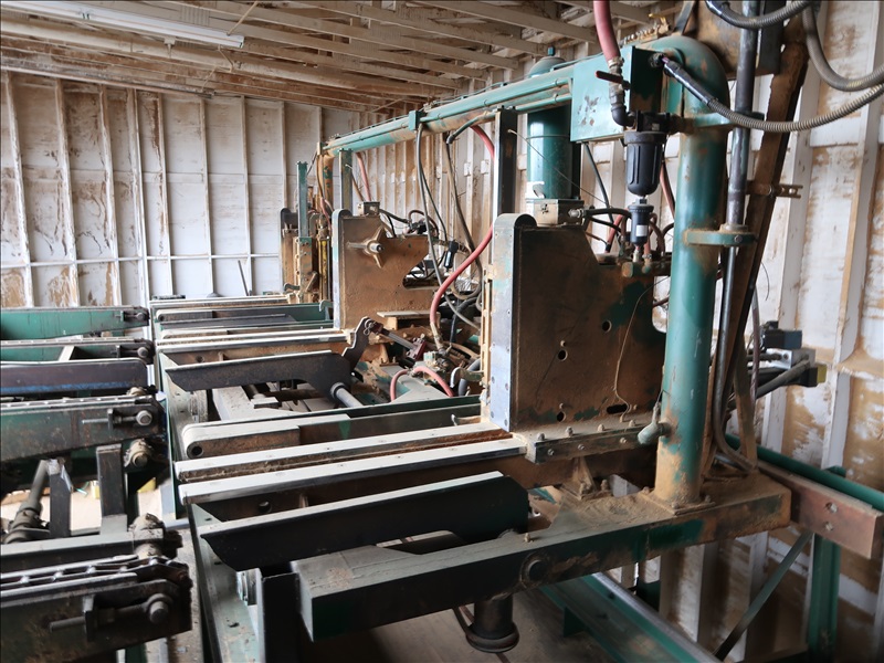42" 3-KNEE TEMPSONIC POSITIONED CARRIAGE W/TONG DOGS, CANT FLIPPERS, (4) TRUCKS, 80' RAILS, SERING SAWMILL 100 HP HYDRAULIC CARRIAGE DRIVE, PFS 25 HYDRAULIC UNIT, DIGITRON SETWORKS, LASER LIGHT