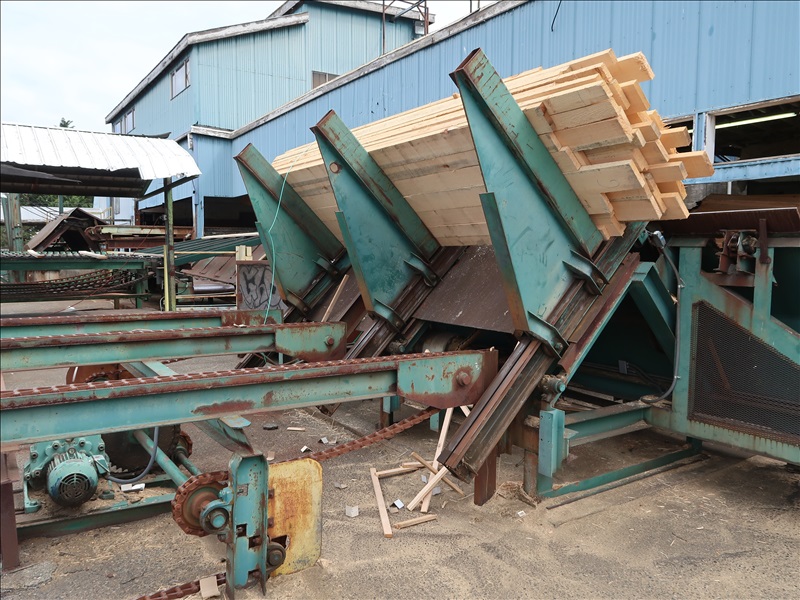 APPROX 12' 3- ARM X 60" MECHANICAL TILT HOIST W/GEARHEAD MOTOR TO BRAKE, APPROX 18' 3-STRAND H78 INFEED TRANSFER W/HITACHI GEARHEAD MOTOR W/DRIVE (INFEED TO KLAMATH RESAW #1)