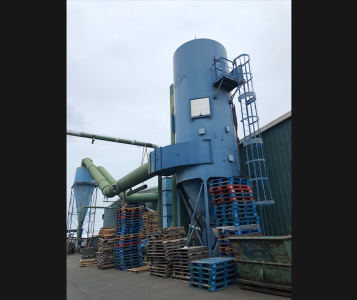 BAGHOUSE DUST COLLECTOR, 225,000 SCFM, (375) 10’ BAGS, ROTARY PULSE SWEEP W/SPEEDAIRE 7-1/2 HP BLOWER, MOD# AM20 ROTARY AIR LOCK, APPROX 40" BLOWER W/125 HP MOTOR, APPROX 20' BLOWER W/30 HP MOTOR, APPROX 15' DIA LONG NECK CYCLONE W/ROTARY AIR LOCK, CLARKE