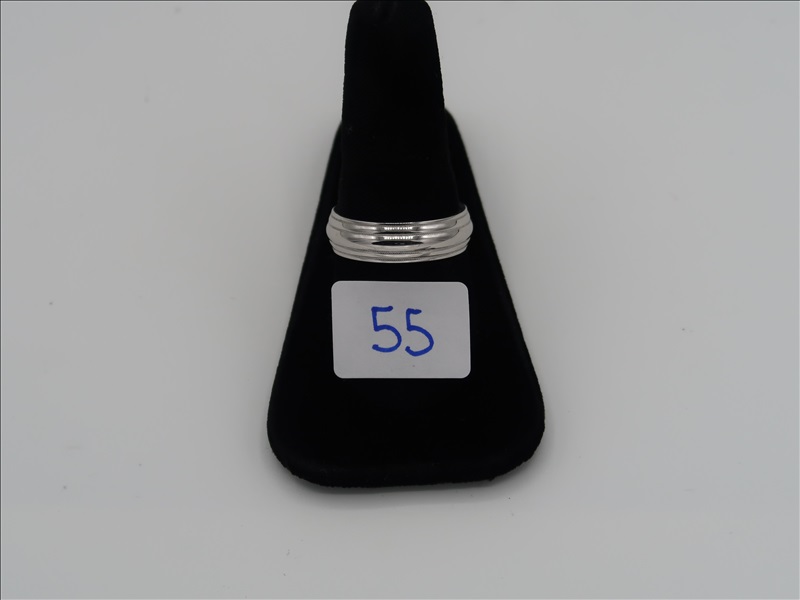14K WHITE GOLD 6.5 MM MENS RING WITH SHINY 1/2 ROUNDED COMFORT MENS BAND, & 4 MILLIGRAIN LINES, RETAIL PRICE: $2200, GRAMS:9.4 DIA WT: RHAPSODY