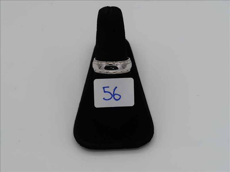 14K WHITE GOLD 7 MM MENS RING WITH HALF ROUNDED MILLIGRAIN HALF MOON DESIGNS ALONG BANDS SIDES, SIZE 8.5, RETAIL PRICE: $1400, GRAMS:7.55