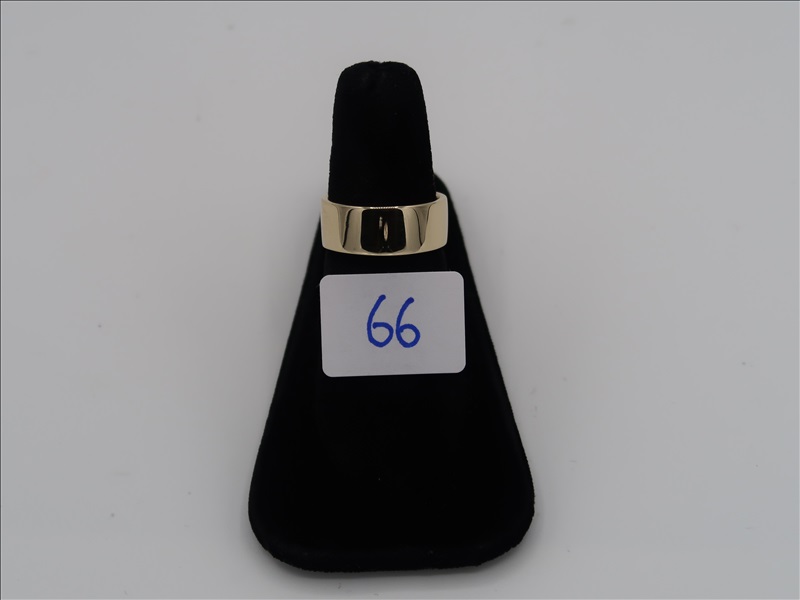14K YELLOW GOLD 7.5 MM FLAT RING BAND, SIZE 6 1/2, RETAIL PRICE: $1500, GRAMS:8.72