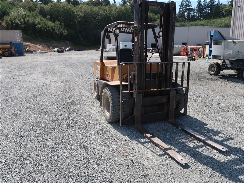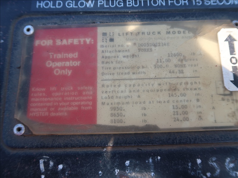 9,950 LB FORKLIFT, DIESEL, 2 STAGE MAST, DUAL CUSHION TIRES