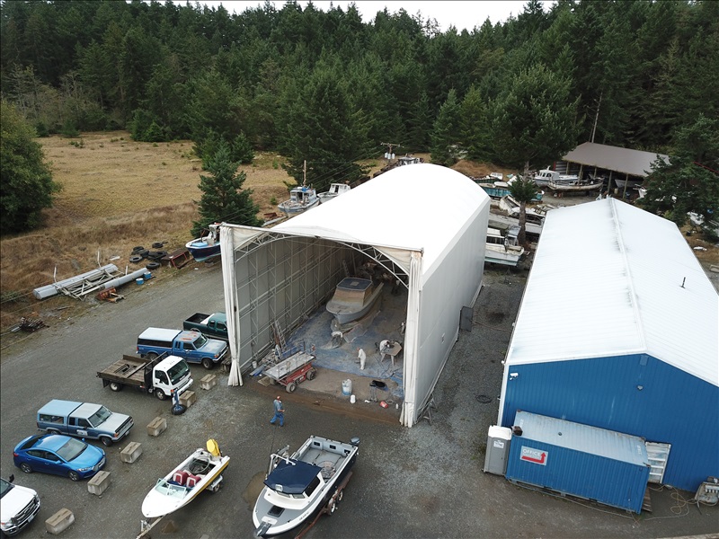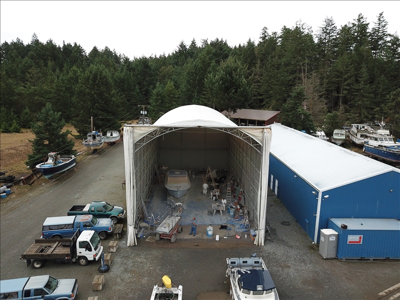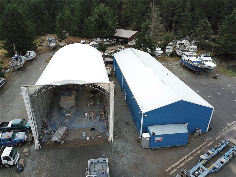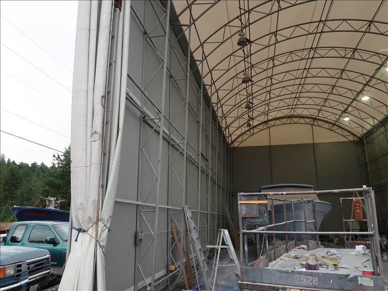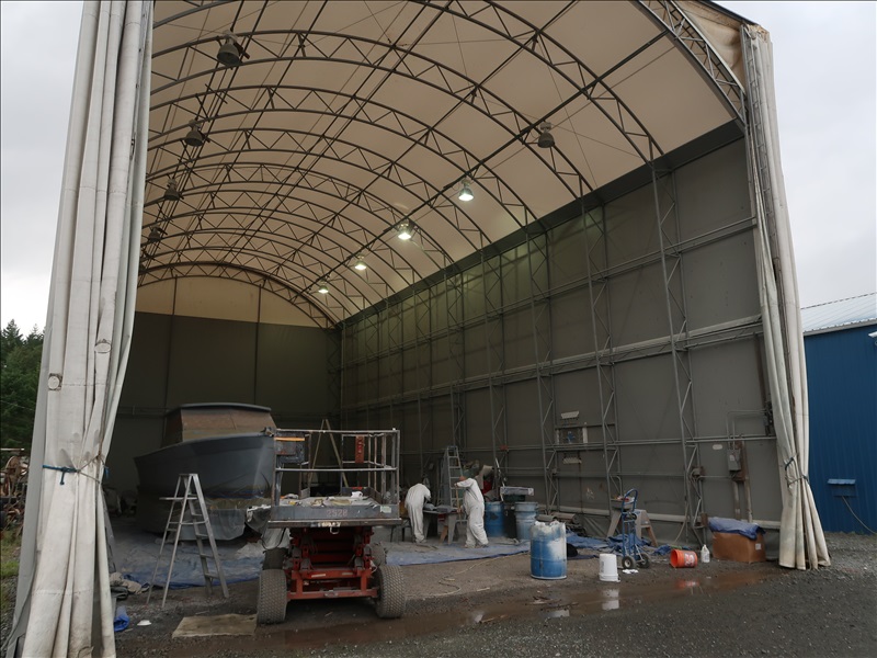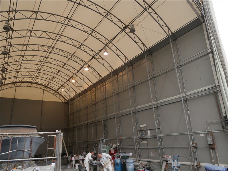 80'X40'X40' STEEL FRAMED PORTABLE BUILDING, LIGHTS, CURTAIN DOOR
