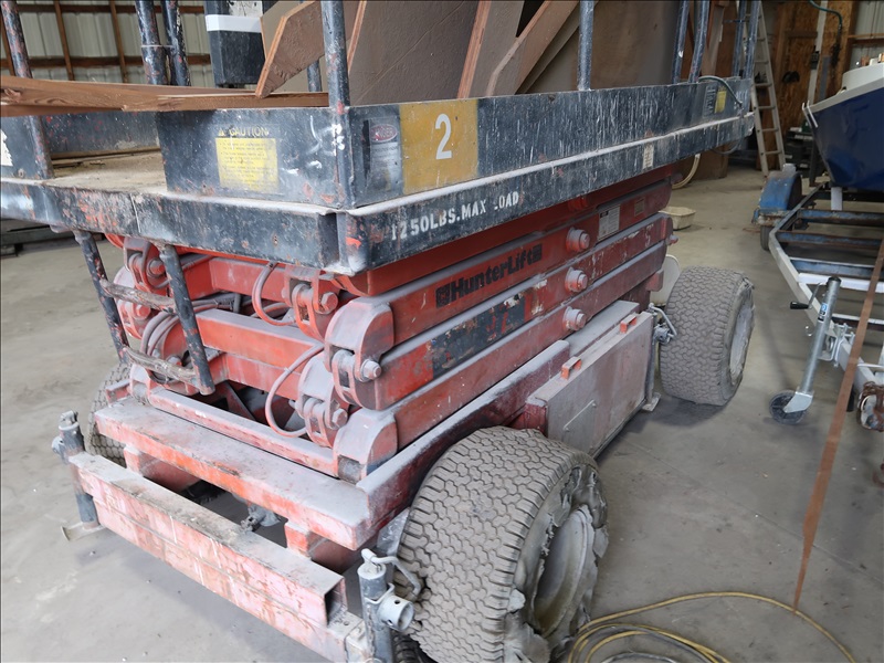 1,250 LB SCISSOR LIFT, 56"X130" DECK, (2)BATTERIES, IC ONBOARD CHARGER (NEEDS TIRES)