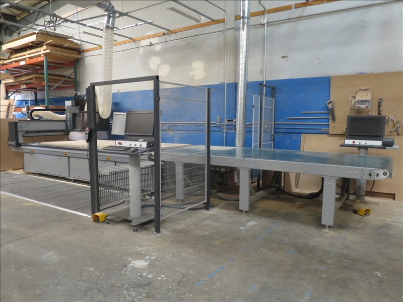 CNC MACHINING CENTER W/TOOL HOLDER, 4TH AXIS, 5'x12' BED, 5'X12-1/2' CONVEYORED BED EXTENSION, (2) BECKER VTLF2.250/0-79 VACUUM PUMPS; 27.5 KW, 400V, 3-PH