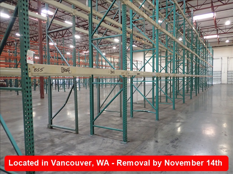LOT, 4-SECTIONS OF 22' X 42" X 8' W SHELVING & 10-SECTIONS OF 22' X 42" D X 90" W SHELVING (ROW 8, $500 REFUNDABLE DEPOSIT REQUIRED FOR PROPER STUD GRINDING)