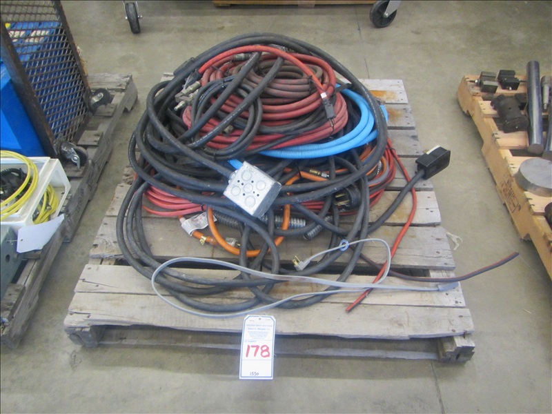 LOT, ASSORTED POWER CORDS & AIR HOSES ON THIS PALLET