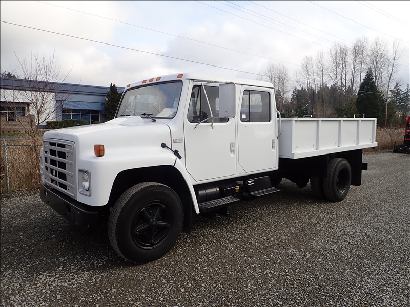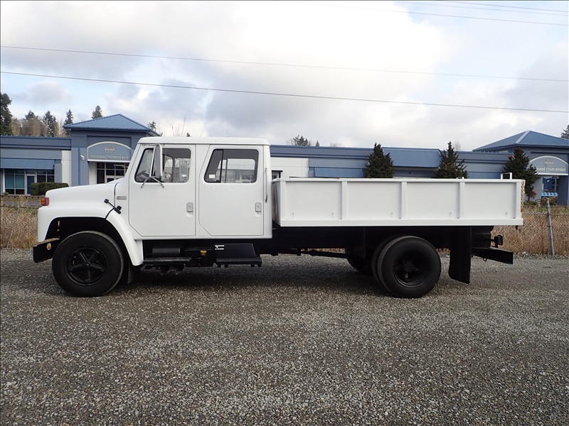 CREW CAB 12' FLATBED, V8 DIESEL, AUTO, A/B