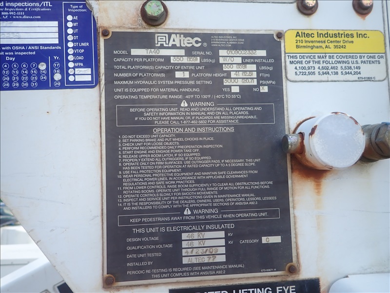 BUCKET TRUCK, ALTEC TA40, 40', 350 LB, 225 HP MAXXFORCE GDT225S, AUTO