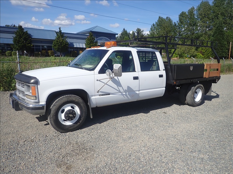 CREW CAB, 9' FLATBED, V-8 DIESEL, 5 SPD