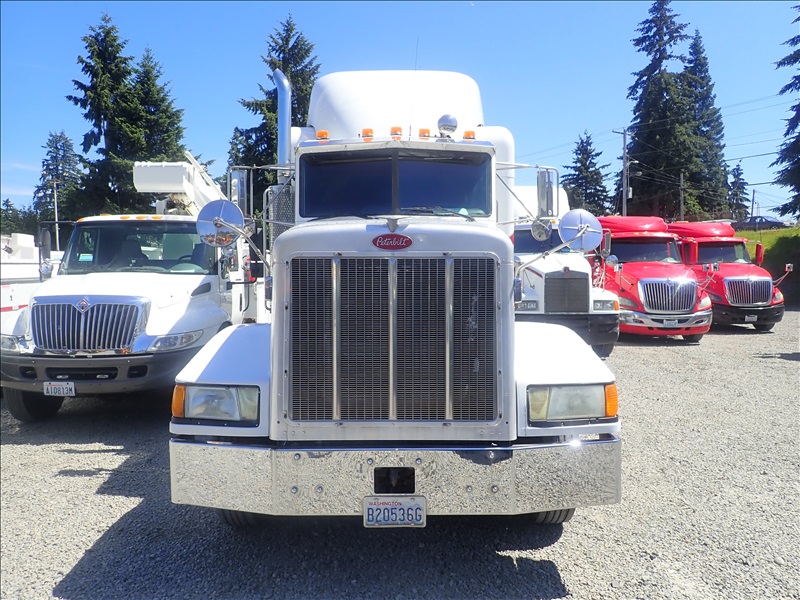 T/A SLEEPER TRACTOR, 350 HP DETROIT SERIES 60, 9 SPD, AIR SUSPENSION, 222" W/B, 12,000 LB FRONT, 38,000 LB REARS, SLIDER, ( FACTORY REMANUFACTURED ENGINE INSTALLED AT 716,483 )