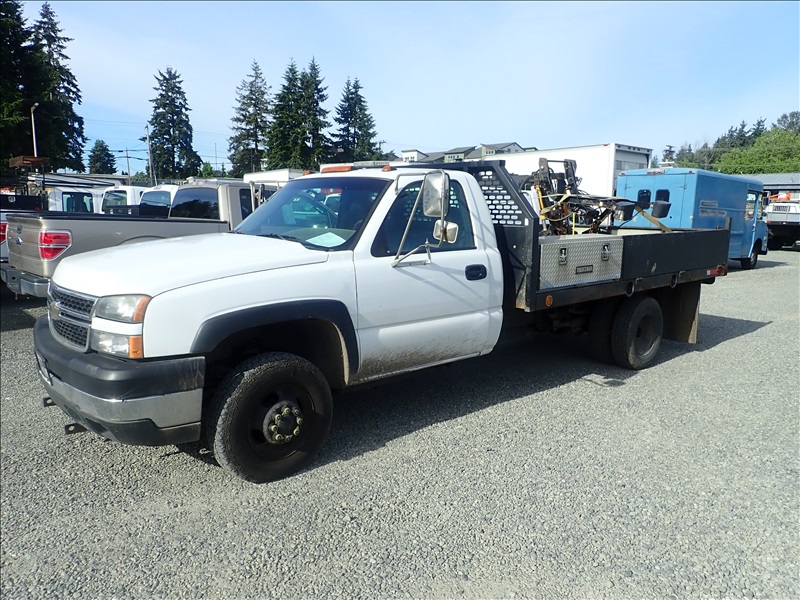 12' FLATBED, 8' MEYERS SNOW PLOW, V-8, AUTO, 4WD