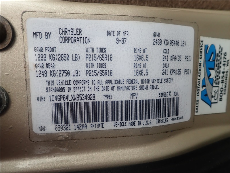 MOBILITY VAN, 6 CYL, AUTO, A/C,CRUISE, TILT, P/WDW, P/SEAT,P/LOCK, WHEELCHAIR RAMP(NEEDS REPAIRED, ELECT ODONOT WORKING)