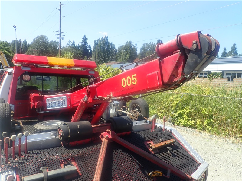 TWIN LINE WRECKER, MILLER F4BOOM, RAMSEY WINCH, UNDERLIFT,FRAME FORKS, DOLLIES, 7.5,5 SPD