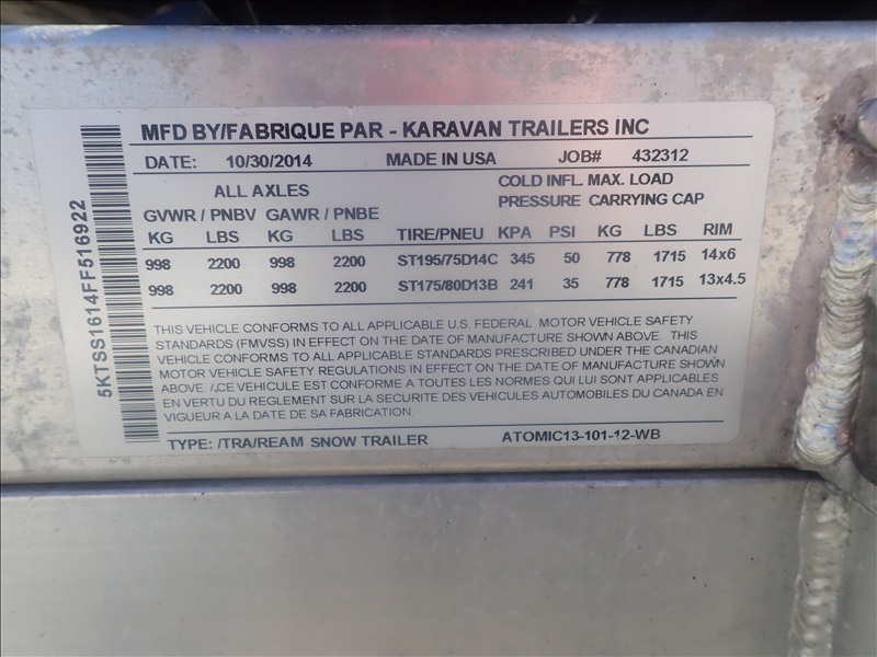 S/A 13' ALUMINUM TILT 2-PLACESNOWMOBILE TRAILER, 175/80R13