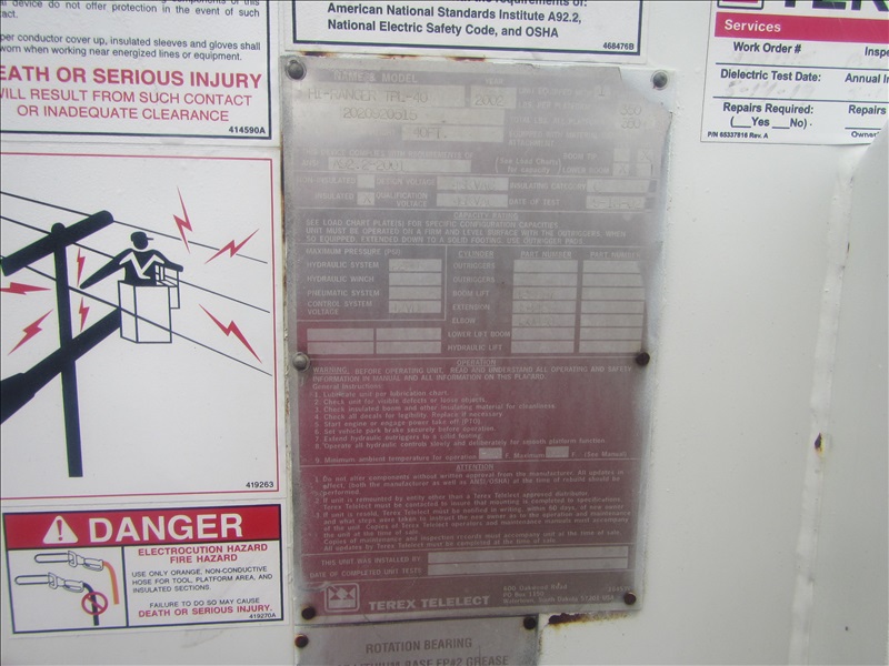 BUCKET TRUCK, HI RANGERTPL40, 40', 350 LB, DT466E,AUTO
