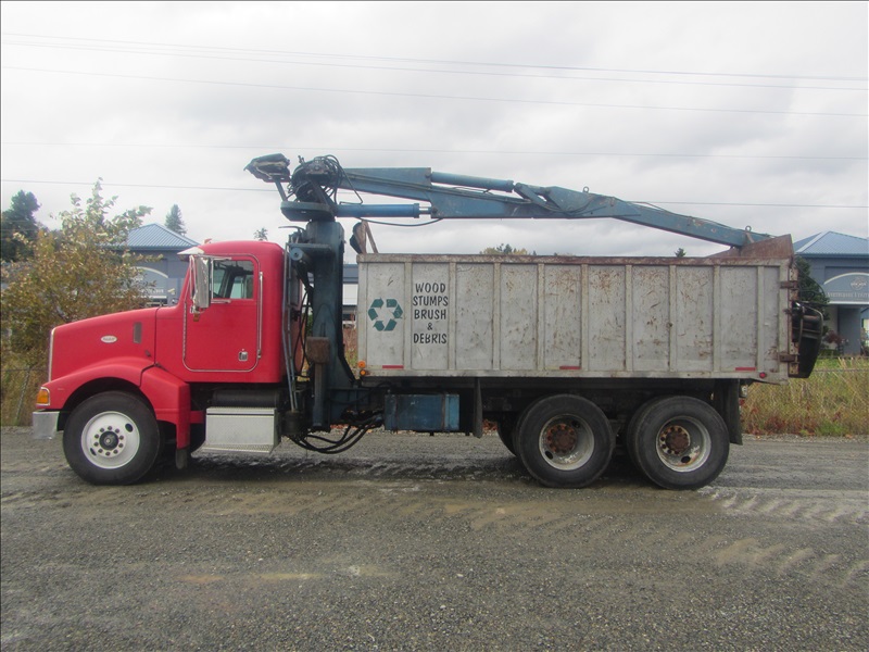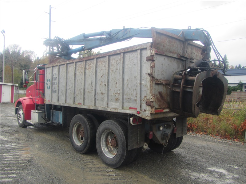T/A DUMP TRUCK, 16' STEEL BOX,SELF LOADER, GRAPPLE, CUMMINS,10 SPD