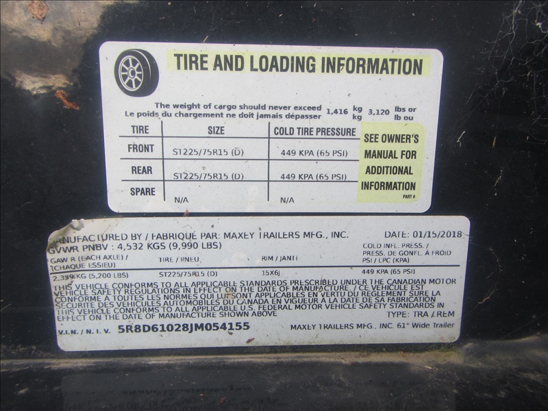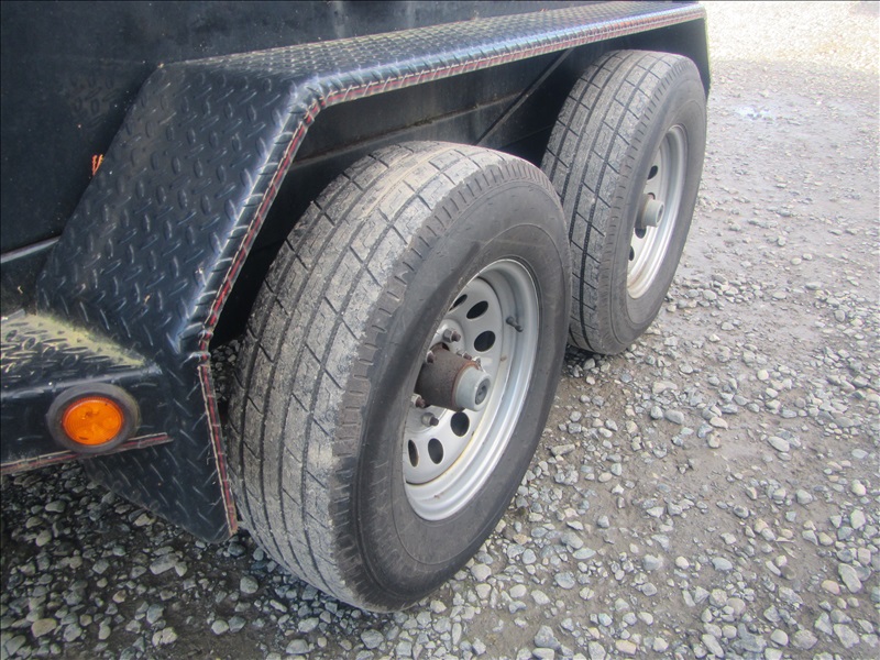 T/A 10'L X 5'W X 40"H SIDES,9,990 GVWR ELECTRIC/HYDRAULICDUMP, BARN DOORS, RAMPS,TARPING SYSTEM, E/B, 225/75-15