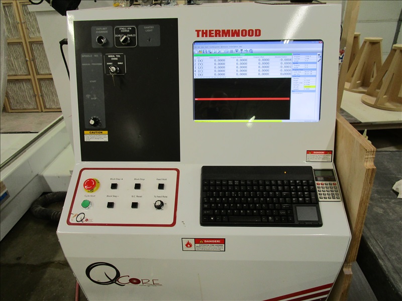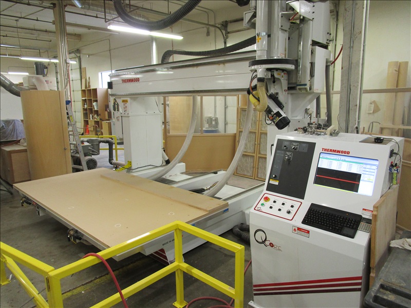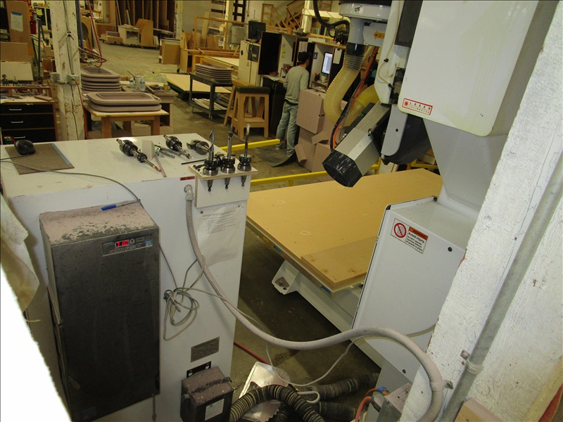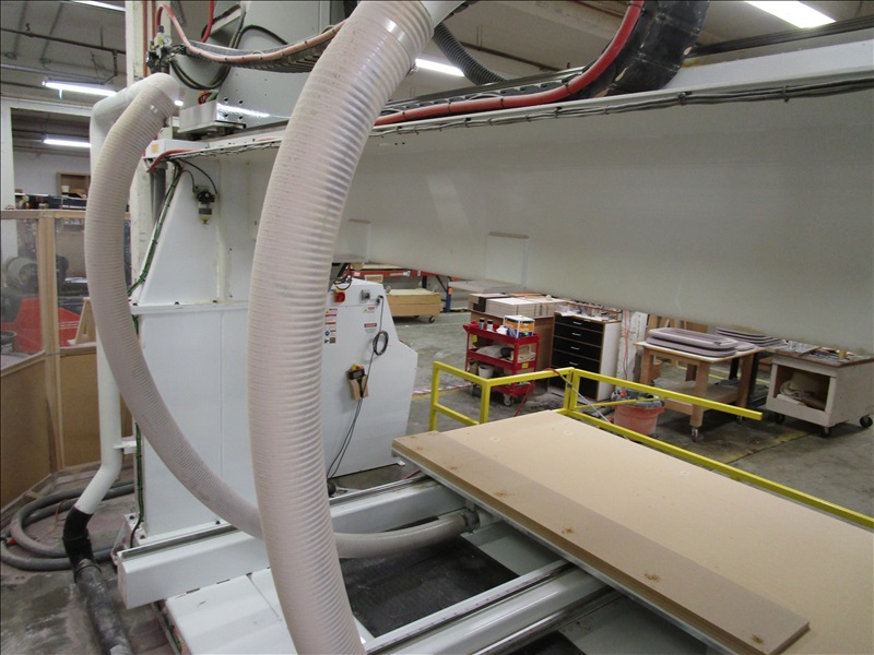 MULTI PURPOSE FIVE AXIS CNC ROUTERS W/FIFTH AXIS HEAD, MANUAL TOOL CHANGER, ONEIDA DUST SYSTEM QCORE CONTROLS, 5'X10' VACUUM TABLE, VACUUM PUMP & TOOLING