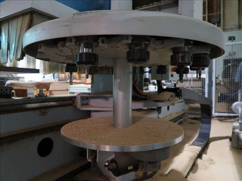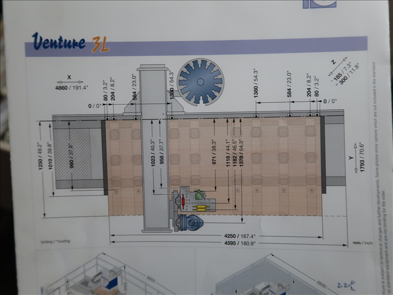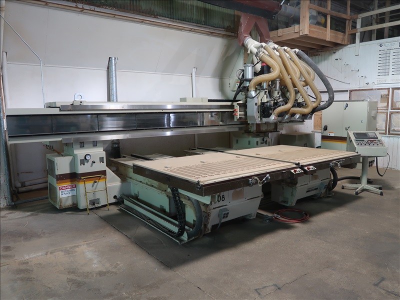 4,250MM X 1,250MM X 125MM WORKING FIELD, (19) VERTICAL & (6) HORIZONTAL DRILLING SPINDLES, (1) ROUTING SPINDLE W/9 KW, (1) C-AXIS W/HSK-F-63, (1) GROOVING SAW (0125MM 90-DEGREE), 14-TOOL CHANGER IN X-DIRECTION
