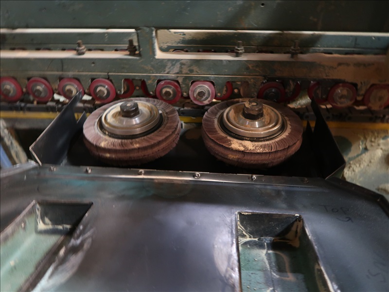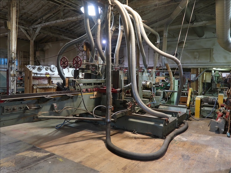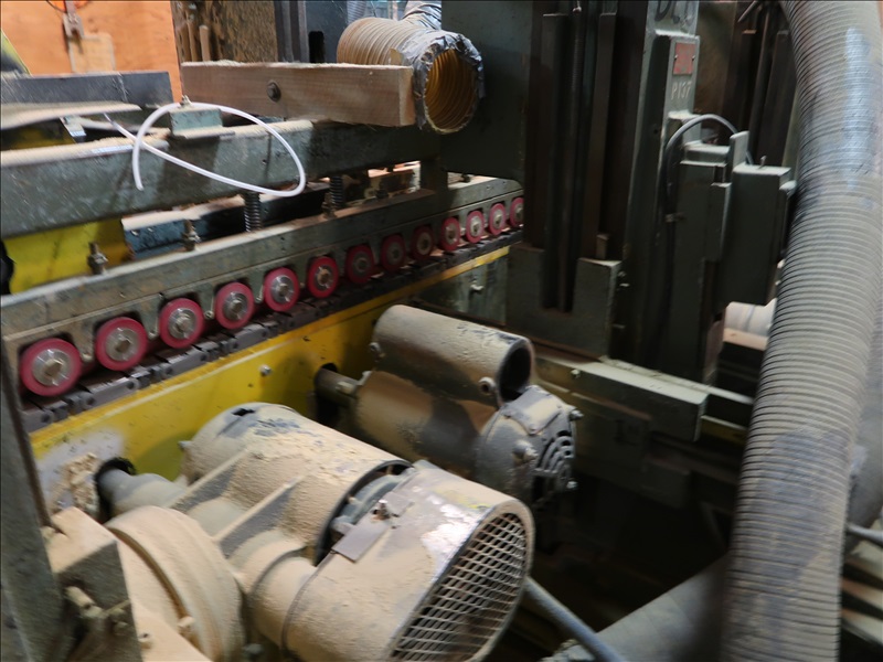 6' CAPACITY, (10) 5 HP-10 HP SAWS, (4) CLEANING BRUSH HEADS, 48" X 72" GRAVITY TOP SCISSOR LIFT, 31" POWERED OUTFEED PINCH ROLLS, CUSTOM DESIGN STAMPING MACHINE W/VERTICAL & HORIZONTAL ROLLS, NUMEROUS SPARE ROLLS
