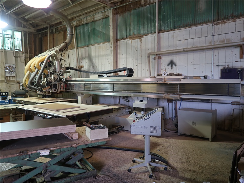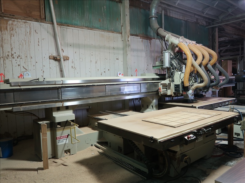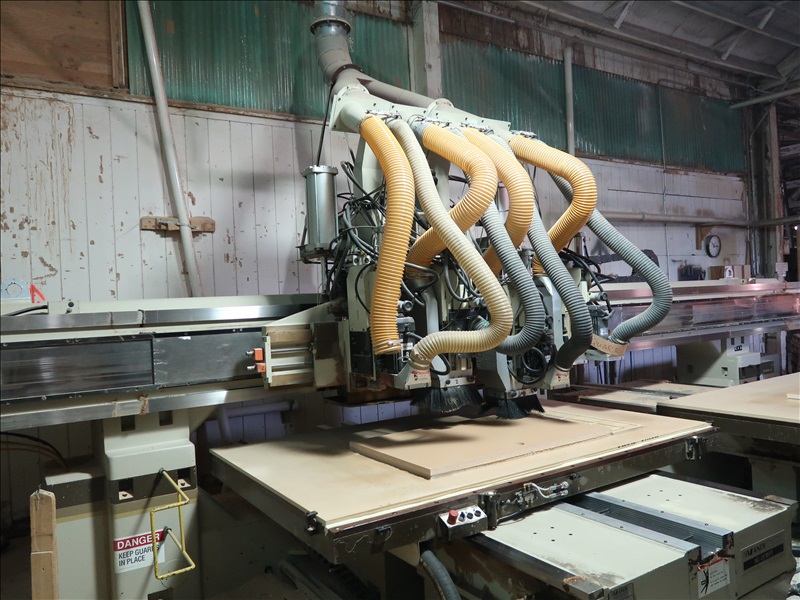 W/(4) MAIN ROUTER HEADS & (4) PIGGYBACK HEADS, 24' OF TRAVEL, TWIN 5' X 8' VACUUM TABLES, TRAVAINI DYNASEAL 40 HP VACUUM PUMP, FANUC CONTROLS