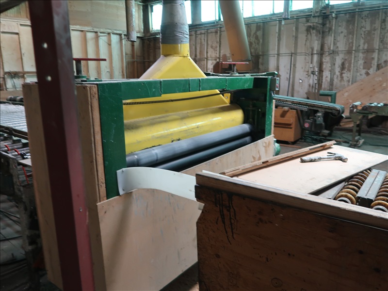 4' CAPACITY PAINT LINE W/BRUSH CLEANING STATION, (2) WATER BASE DIRECT ROLL COATING STATIONS, INFRARED/HIGH VELOCITY FORCED AIR OVEN, UV BASED DIRECT ROLL COATER, NIBBLER/BRUSH STATION, UV OVEN, ALL CONVEYORS