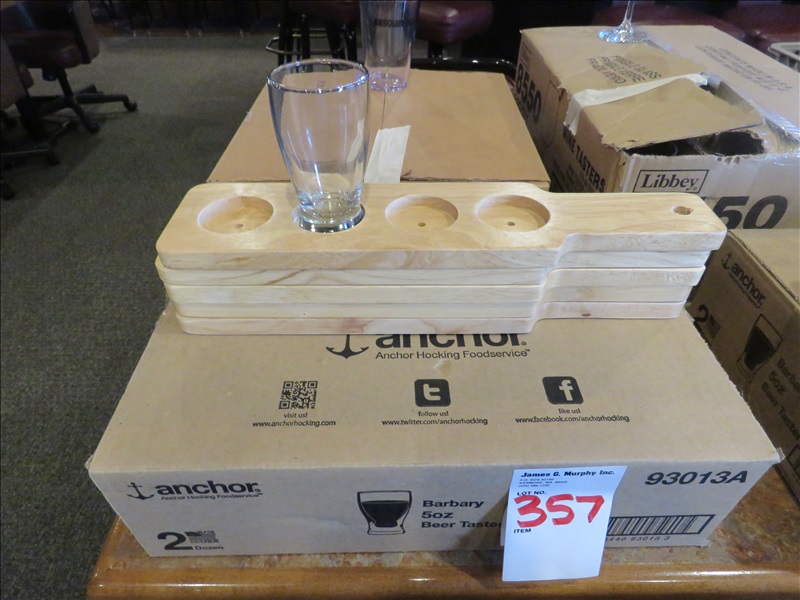 LOT, (24) 5 OZ BEER TASTING GLASSES W/(4) FLIGHT BOARDS