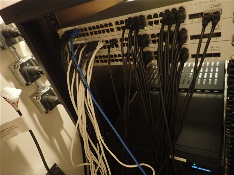 GROUP OF SERVER RACK W/(3) CISCO MS-350-48FP CLOUD MANAGED SWITCHES & (3) APC BATTERY BACKUPS