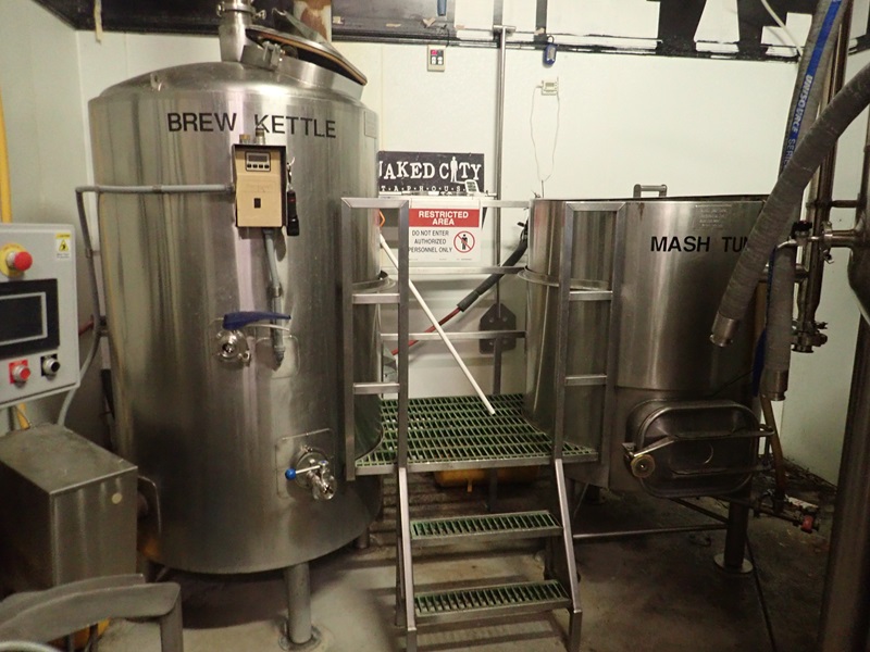 2-VESSEL APPROX 5 BARREL BREW SYSTEM TO INCLUDE: BREW KETTLE, MASH TUN, CATWALK, PIPING, VALVES, ACCESSORIES, S/N'S:1-04-95-07;2-04-95-05