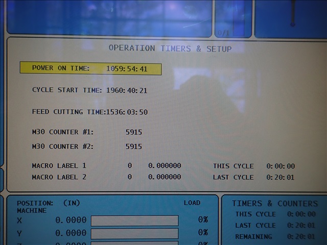 CNC VERTICAL MACHINING CENTER, 16"X36" TABLE, 20-STATION ATC, CAT 4O, LAB MEMORY, CHIP AUGER, RENISHAW PROBE, 55 GAL. COOLANT SYSTEM, HAAS CONTROLS, CUTTING TIME: 1,536, HRS., S/N:1095390