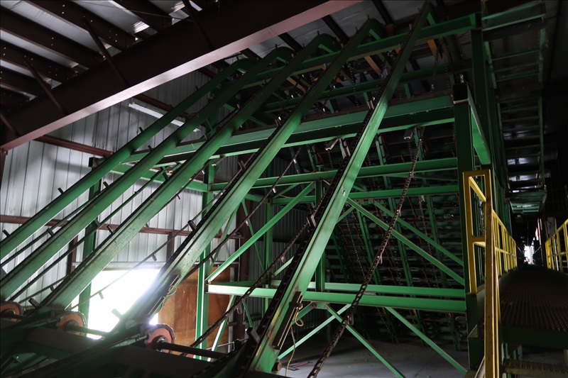 20-TRAY SORTER W/6'-20', 4"-18" & 3/4"-2" 110 LPM CAPACITIES, 21' 9-STRAND 81X INFEED TRANSFER W/(9) 15' EVEN END ROLLS, 2-1/2' X 5-ARM TIPPLE GATE, APPROX 36' 5-STRAND 81X INFEED INCLINE TRANSFER, 6'-5" X 6-STRAND TRANSITION BELT, APPROX 70' 5-STRAND DEC