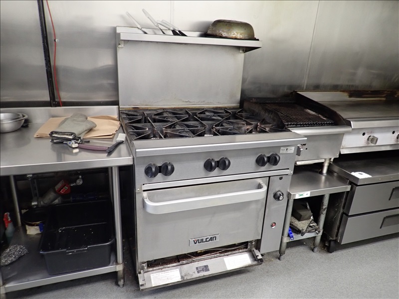 36" NATURAL GAS, 6-BURNER GAS RANGE OVEN W/BACKSPLASH ON CASTERS