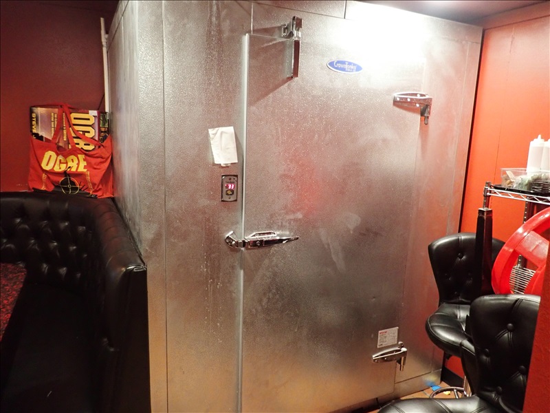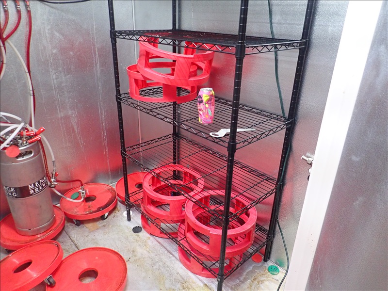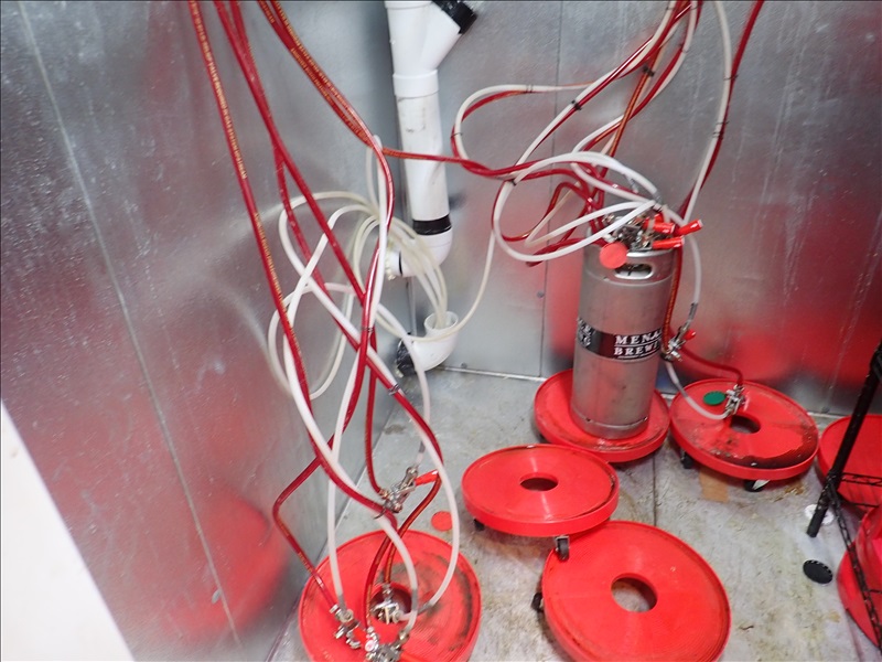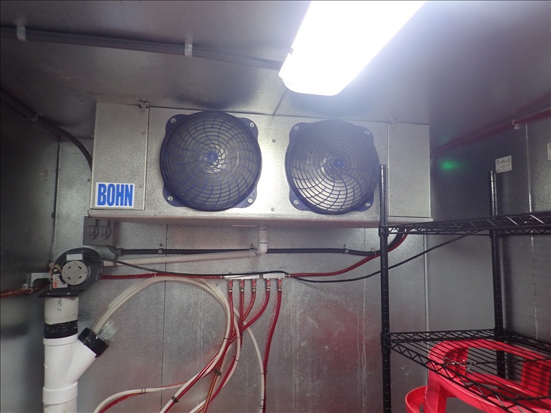 APPROX. 6'X6'7' WALK-IN KEG COOLER W/COMPRESSOR, BOHN 2-FAN EVAPORATOR, BEER LINES. LED LIGHTS, FLOOR, RACK & MAN DOOR (NOTE: COMPRESSOR MAY BE MOUNTED ON BUILDING ROOF)