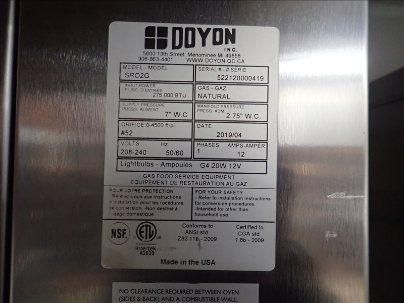 72" SINGLE DOOR ROLL IN OVEN, NATURAL GAS, HOOD