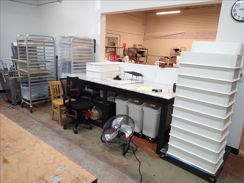 PAN RACKS, MARBLE TABLE, DRY GOODS BINS, PROOFING BINS & MISC.
