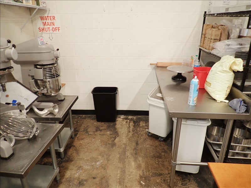 S/S TABLE, BAKERS TABLE, SHEET PANS, DRY GOODS BINS & MISC. BAKING SUPPLIES