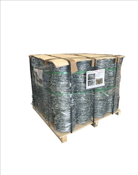 QTY OF (48) HIGH TENSILE BARBED WIRE ( 48 ROLLS/PALLET)