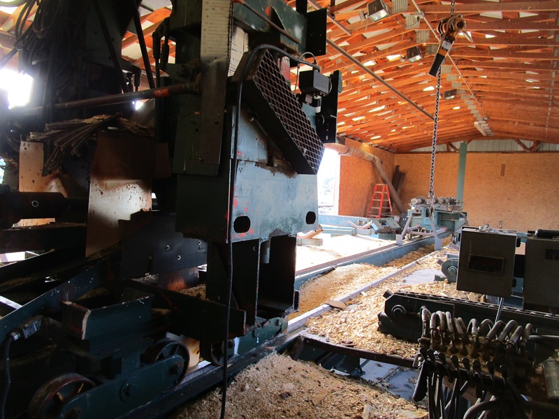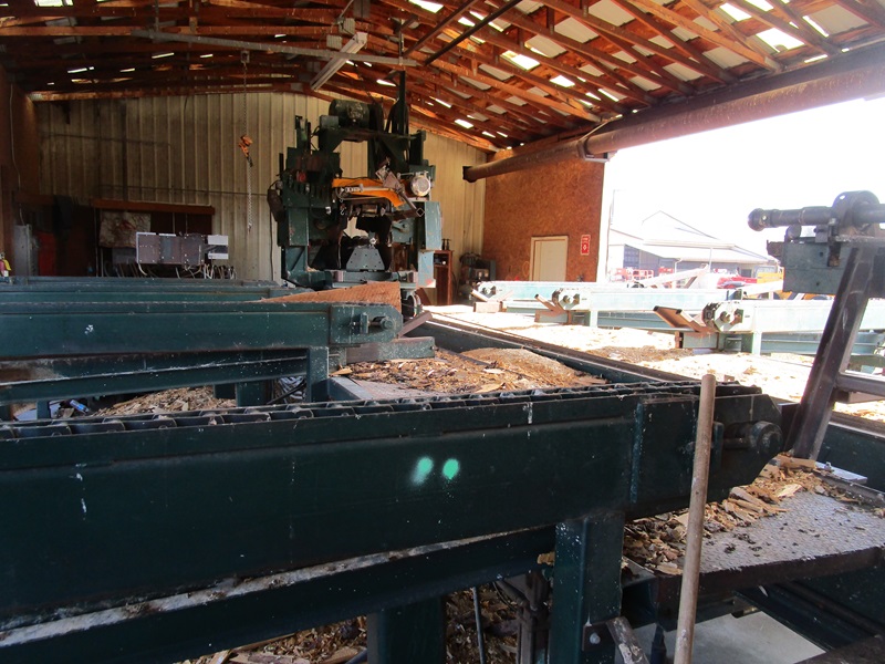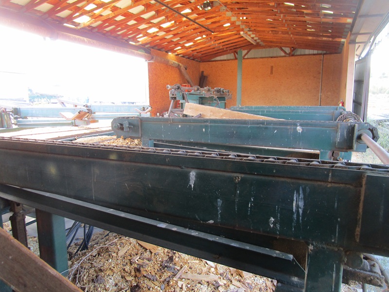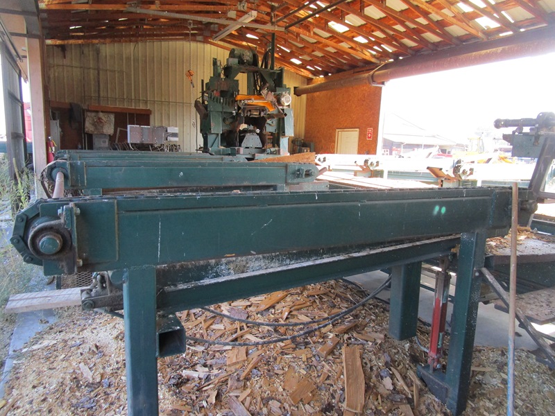 SHOP BUILT LOG TURNING LATHE TO INCLUDE: TRAVEL CARRIAGE, LATHE SPINDLE, SET FOR GROOVING, LOG INFEED & OUTFEED, HYDRAULIC UNIT, SAYLOR-BEALL AIR COMPRESSOR, CHAMPION AIR COMPRESSOR, CURTIS AIR COMPRESSOR & ELECTRICS