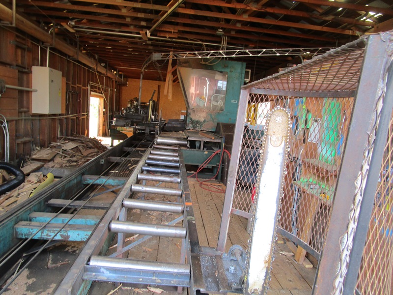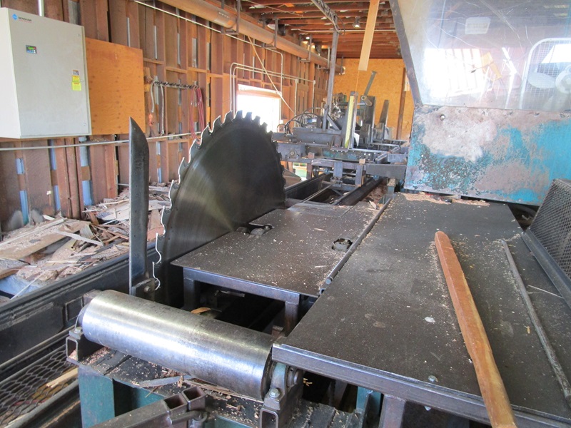 SAWMILL TO INCLUDE: 5-STRAND 78 CHAIN LOG DECK W/DRIVE, LOG KICKERS, HELLE 3-KNEE CARRIAGE, 56" CIRCLE SAW, 150 HP HUSK, OPERATORS BOOTH, (2) HYDRAULIC UNITS, CHAIN, CUT OFF SAW, OUTFEED ROLLS, GRAVITY ROLLS, BENSHAW SOFT START, BLOWER & ELECTRICS