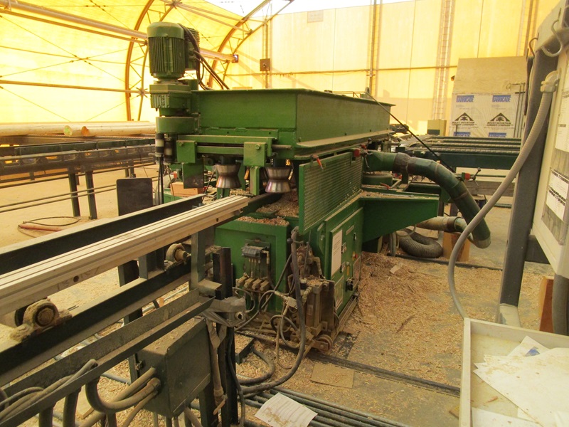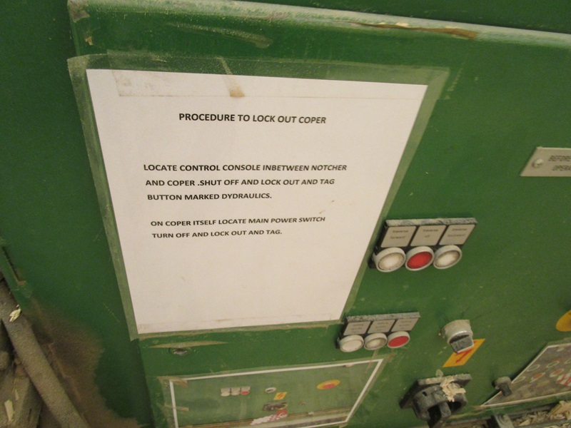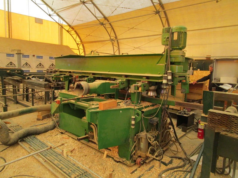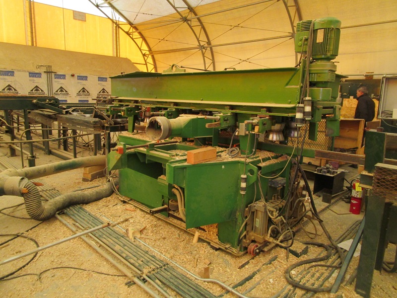 SHOP BUILT COPER MACHINE, 7"-14" LOG W/LOG TRANSFER, APPROX. 40' INFEED ROLLCASE, LOG STOP, APPROX. 30' OUTFEED ROLLCASE, CONTROLS & ELECTRICS