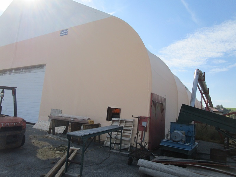 60'X80' PORTABLE BUILDING, (3) MAN DOORS, (1) 30' GARAGE DOOR, LIGHTS, LOCHINVAR COPPER-FIN II HEATER