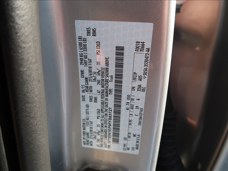 CREW CAB, 4X4 PICKUP TRUCK, V6, AUTO, 6' BED, S/N: 1FTEW1EP9FFB83727, MILES: 117,100