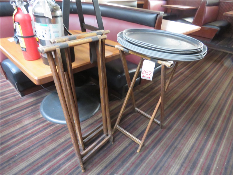 LOT, (3) TRAY STANDS & (8) SERVING TRAYS