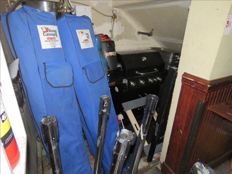LOT, ROYAL GOURMET GAS BBQ, ASSORTED SS HOTEL PANS & SHOP VAC IN THIS CLOSET (DOES NOT INCLUDE GAS OR AIR TANKS, ITEMS LISTED ONLY)